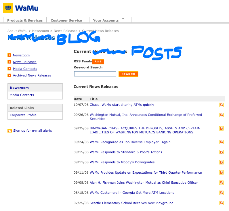 If the White House blog is considered a blog, then check out WaMu’s new blog:
