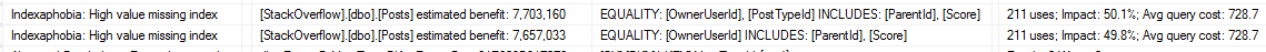 And when I run sp_BlitzIndex® after doing a little load testing, both missing index recommendations show up in the DMVs: