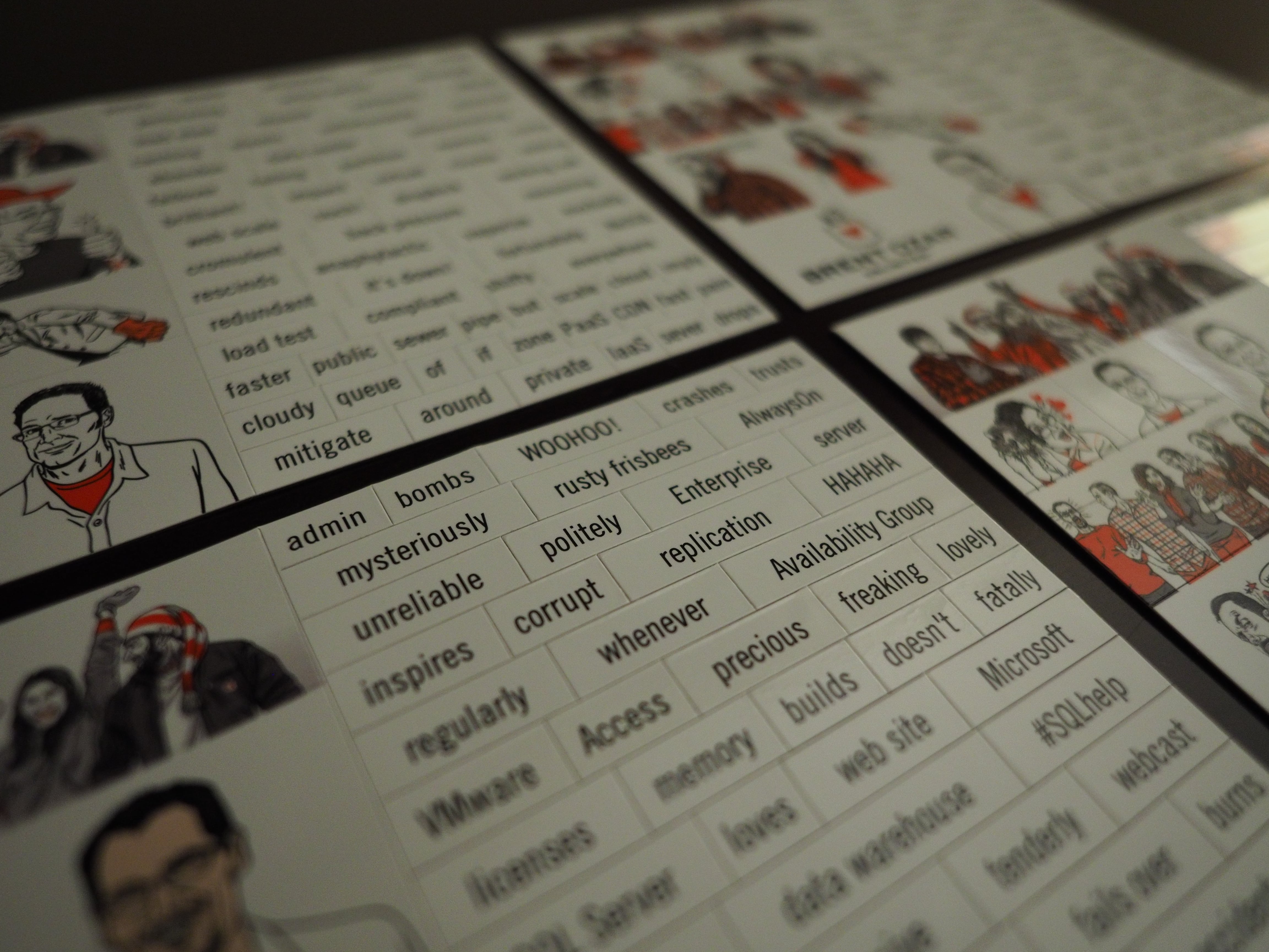 To get one, just track us down at a conference or user group. This week, Doug & Kendra will be at the PASS Summit in Seattle, and I’ll be at SQL Intersection in Vegas. The more of us you meet, the more words you’ll be able to work with, since we’ll each carry our own sheets.