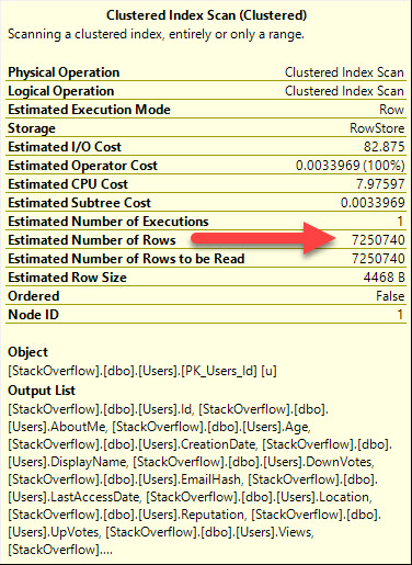 Normally when you look at an execution plan, or read the XML (I know I’m not the only one…), you can see the number of rows that the optimizer guesses is going to come out of an operation.
