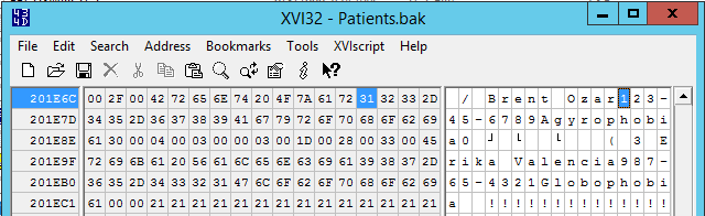 Then back up the database without using compression, and open up the backup file with a hex editor: