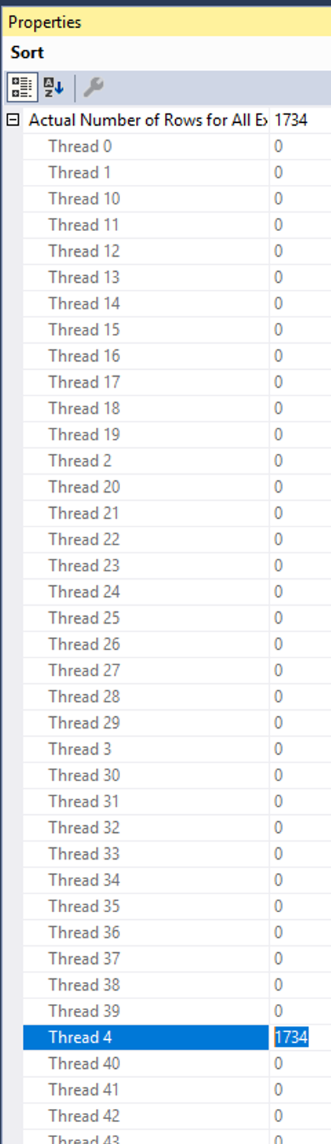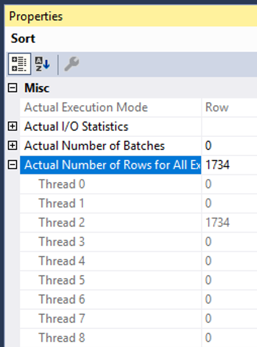 However, if you right-click on each operator, like the sort, and look at the number of pages assigned to each thread, it isn’t what you would call balanced. One thread read all of the data and did all of the work while the rest of the threads went out for a smoke break.