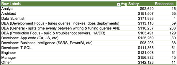 Thanks Brent! As a boss/hirer of DBAs, it’s good to see how we pay our people as compared what other companies pay. So thanks for doing this – from not a DBA!