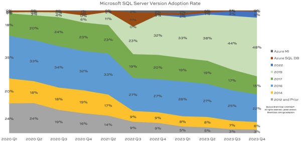 - SQL Server 2022: 5%, up from 4% last quarter
