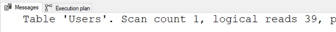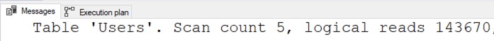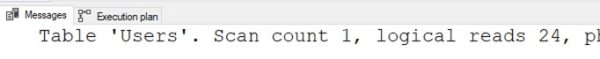 SET STATISTICS IO ON; GO BEGIN TRAN DELETE dbo.Users WHERE DisplayName = N'Brent Ozar'; |