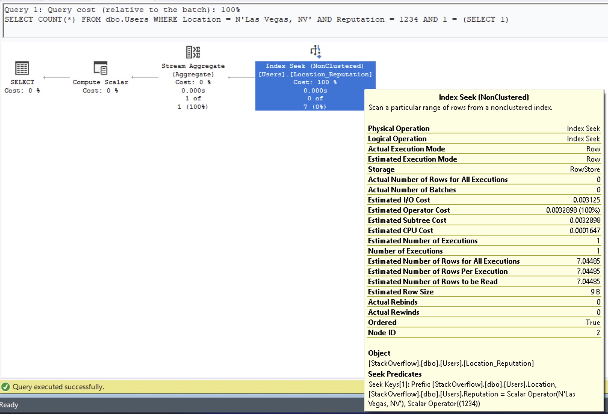 Here’s the part that’s kinda mind-blowing. Here’s the query plan for Las Vegas and 1234: