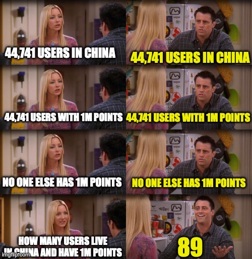 - How many people do you THINK live in China, AND have 1,000,000 points?