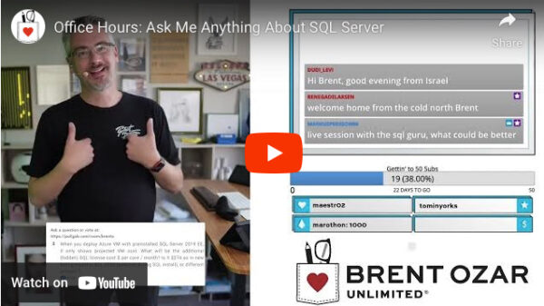 The application’s bottleneck was the CPU-intensive UDFs. The server was frequently pegged at 100% CPU, and queries just couldn’t run any faster until they were rewritten to rip out the UDFs. I put together a recommended plan of action to take those UDFs out, which would make the application an order of magnitude faster. I noted that they should probably start working on the storage performance in a second track, because the instant the UDFs were removed, storage was going to become a problem. With the CPU-burning UDFs out of the way, the server would be able to churn through more records faster, but the storage subsystem wouldn’t be able to deliver records fast enough to satisfy the users.